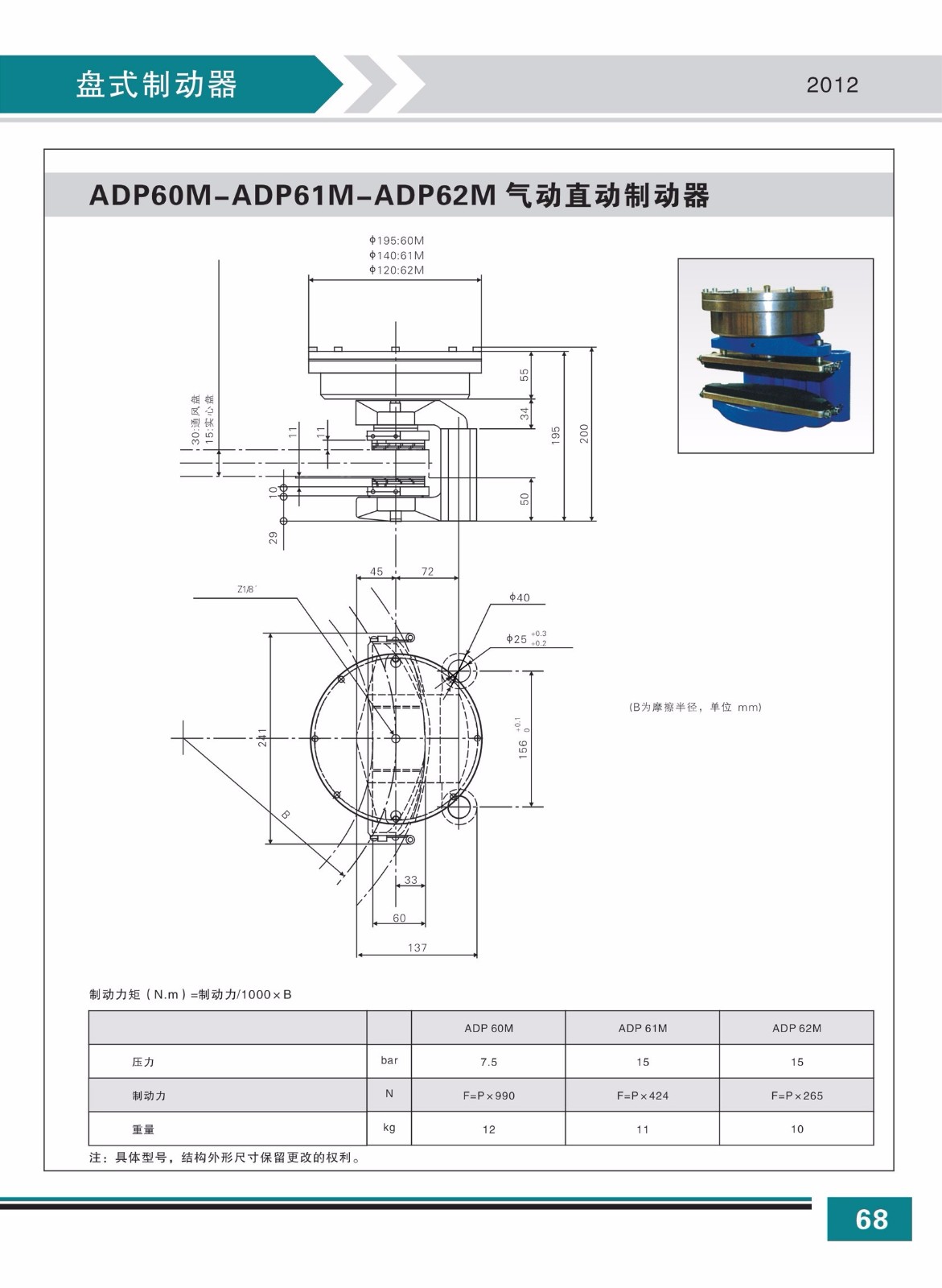 ADP60M-ADP61M-ADP62M氣動直動制動器
