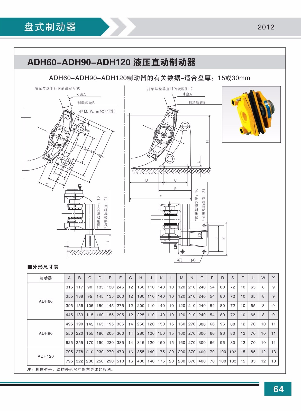 ADH60-ADH90-ADH120 液壓直動(dòng)制動(dòng)器